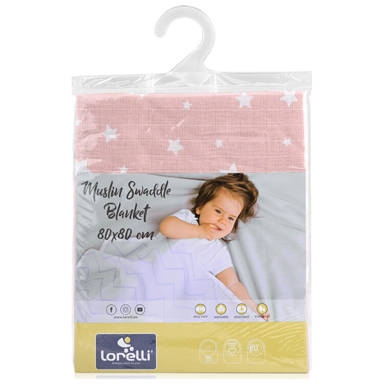 Πάνα μουσελίνας 80×80 Lorelli Muslin Swaddle Rose with Stars 10340092302