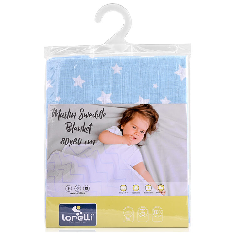 Πάνα μουσελίνας 80×80 Lorelli Muslin Swaddle Aquatic with Stars 10340092305