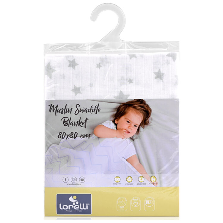 Πάνα μουσελίνας 80×80 Lorelli Muslin Swaddle White with Grey Stars 10340092307