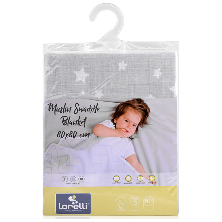 Πάνα μουσελίνας 80×80 Lorelli Muslin Swaddle Grey with Stars 10340092308