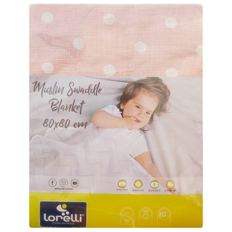 Πάνα μουσελίνας 80×80 Lorelli Muslin Swaddle Pink Dots 10340091903