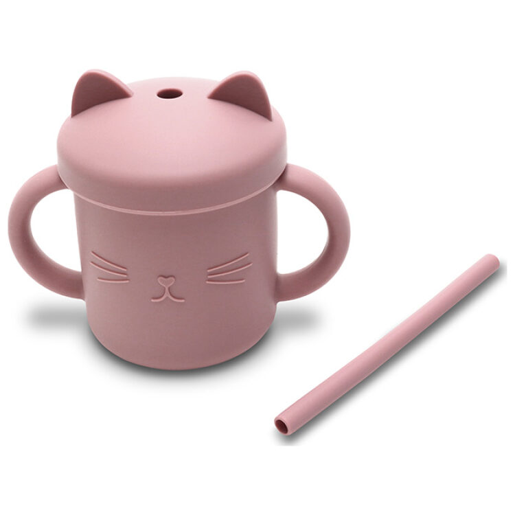 Κύπελλο σιλικόνης με λαβές και καλαμάκι, Lorelli Natural Deep Pink 10230660002