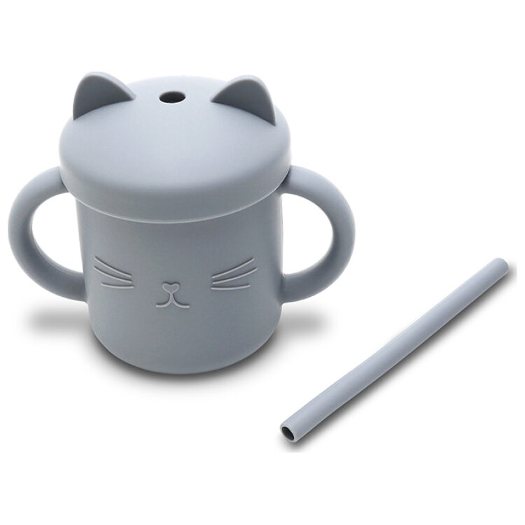 Κύπελλο σιλικόνης με λαβές και καλαμάκι, Lorelli Natural Grey 10230660003