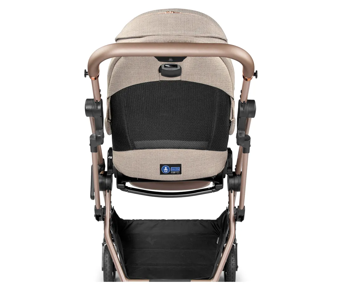 Η δομή του καθίσματος από εύκαμπτα υλικά μειώνει τους κραδασμούς στο ελάχιστο, εγγυώμενη εξαιρετικά άνετα περπατήματα από τη γέννηση έως και 22 κιλά. Η πλάτη ρυθμίζεται σε διαφορετικές θέσεις, ακόμη και σε πλήρη ανάκλιση.