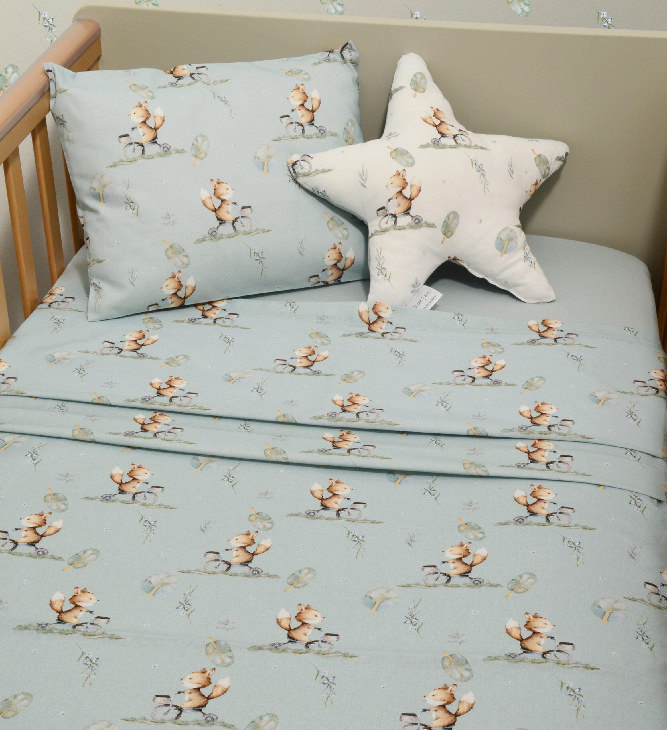 Το σετ σεντονιών της εταιρείας Baby Oliver είναι κατάλληλο για κούνια και αποτελείται από ένα κατωσέντονο, ένα πανωσέντονο και μία μαξιλαροθήκη.